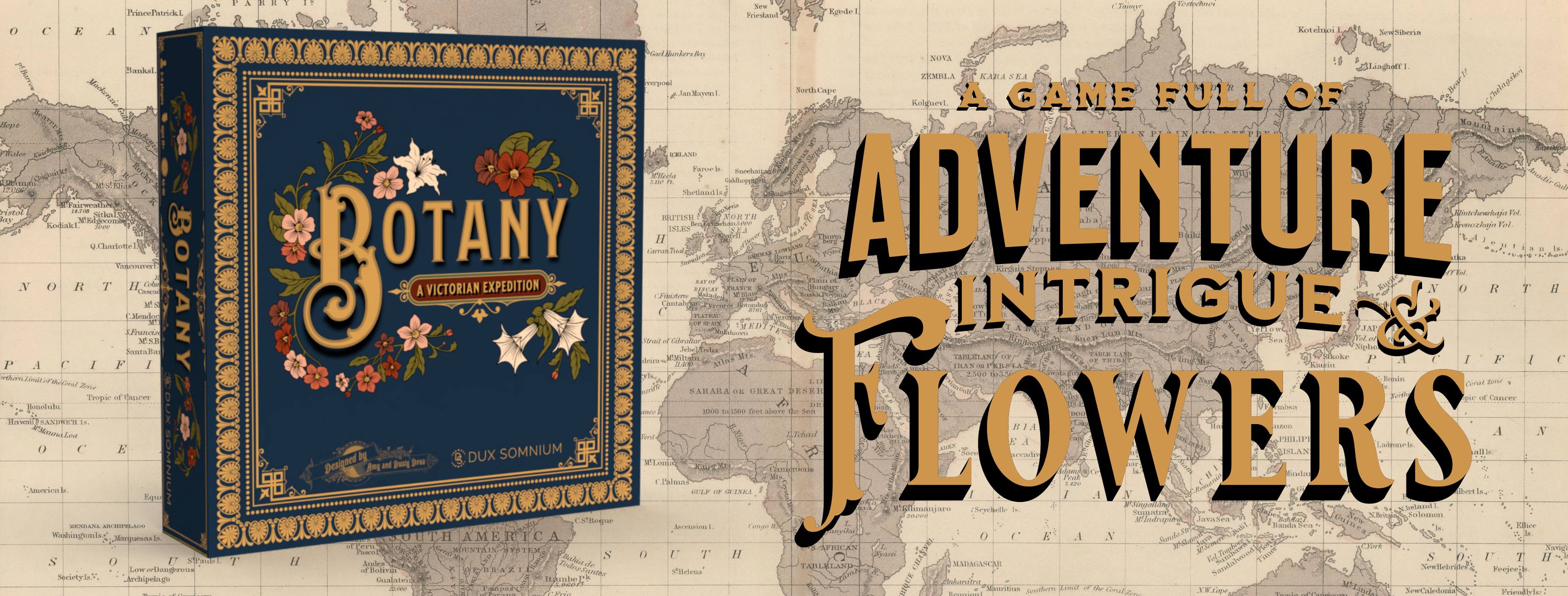 Botany is a strategy board game where you take on the role of a Victorian Era flower hunter as you explore the world in search of fortune, fame, and adventure.
